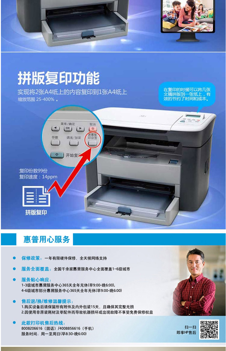 惠普(HP) M1005 黑白激光打印機(jī)多功能一體機(jī)